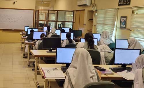 A high tech Electronic Lab is designed for specific Electronic Courses. This is where a fresh student in the Electronic Department starts. One is introduced to the very basics of electronics here. The students have their hands on state of the art equipments. They start early with the multi-meters. Analog as well as digital multi-meters are available here. Students get to use Function Generators and Oscilloscopes. Students perform their Lab work on Lab trainers. Analog as well as digital power supplies are available to power up the projects. Besides this basic equipment, some highly sophisticated devices are also available for the convenience of the students. A universal IC tester and an LCR (Inductance Capacitance & Resistance) meter are a couple of examples.